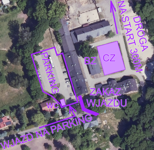 Bezpłatny w Centrum Zawodów. Wjazd na parking tylko w sposób przedstawiony na schematach poniżej